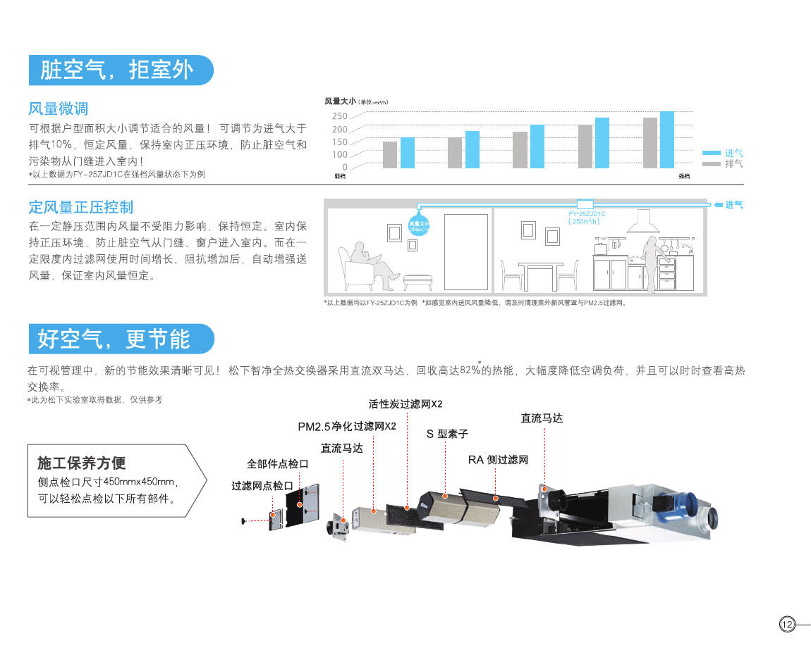 松下雙向流新風(fēng)系統(tǒng)-智凈全熱交換器FY-25ZJD1C 雙網(wǎng)秒殺PM2.5,干凈看得見 * 空氣質(zhì)量可視化 * 雙重HEPA濾網(wǎng)過濾PM2.5 * 自動(dòng)切換運(yùn)轉(zhuǎn)模式,調(diào)節(jié)室內(nèi)環(huán)境 * DC雙馬達(dá),實(shí)現(xiàn)定風(fēng)量正壓控制 * 85%的高熱能回收率,節(jié)省空調(diào)能耗 * 24小時(shí)排氣,輔助空調(diào)節(jié)能,增加室內(nèi)含氧量 ![]() ![]() ![]() ![]() ![]() ![]() ![]() ![]() |