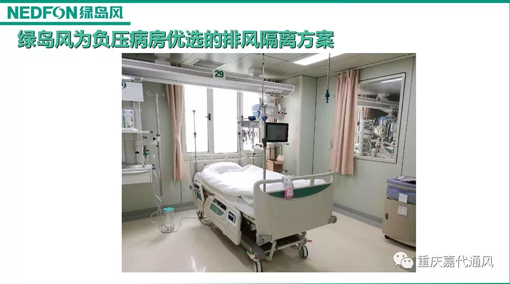 2. 從病房環(huán)境考慮,必須配置有效的排風(fēng)設(shè)備,設(shè)備必須有高效過濾裝置,做到快速排離病菌,快速降低病房中病菌含量,以及對(duì)室外環(huán)境的保護(hù)。