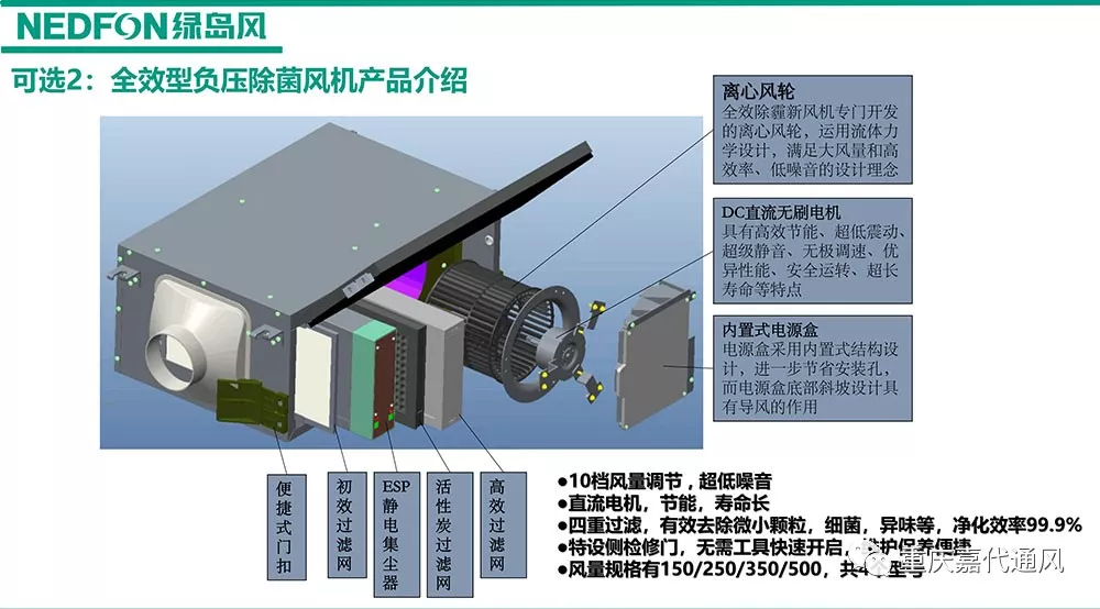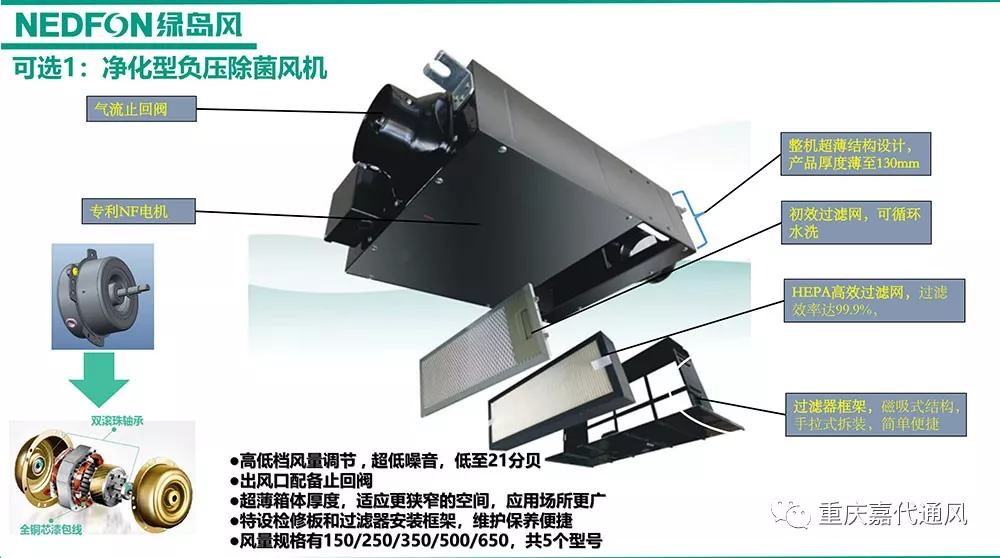 3. 排風(fēng)機(jī)具有高效過濾網(wǎng)凈化空氣功能,防止病毒微粒排出室外,以保護(hù)環(huán)境。
