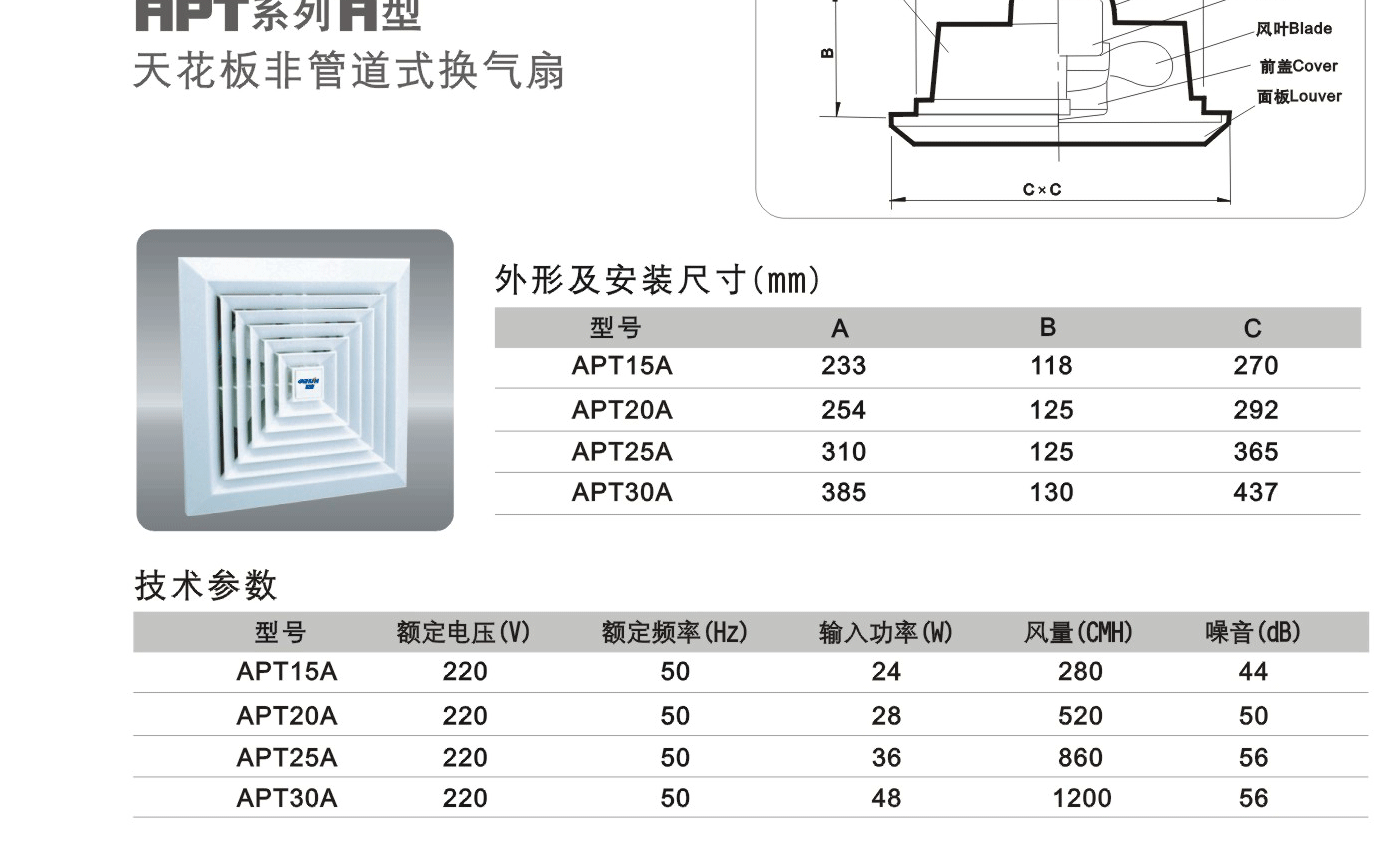 • 正野百葉窗換氣扇APT系列A型