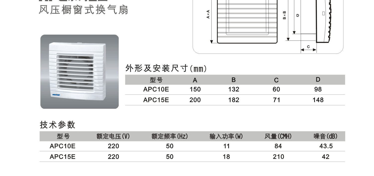 • 正野櫥窗式換氣扇APC系列E型